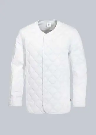 1/1 Arm mit innenliegenden Ärmelbündchen, V-Ausschnitt, verdeckter Druckknopfverschluss, Steppgewebe (hochfrequenzverschweißt) HACCP, Risikoklassen 1-3 Steppgewebe V-Ausschnitt normale Passform DIN 10524 Arbeitskleidung nach HACCP f. d. Lebensmittelindustrie Risikoklasse 1-3,