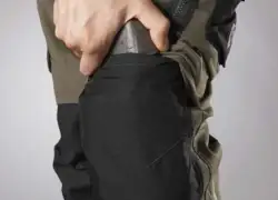 Gummizug im Rücken, Bundfalten, 2 Seitentaschen, 1 verschließbare Gesäßtasche mit Verstärkung, doppelte Zollstocktasche