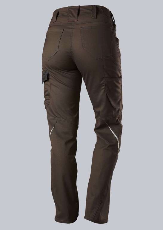Schlanke Silhouette, Damenpassform, seitlicher Dehnbund für optimalen Sitz, ergonomischer Schnitt, D-Ring zum Befestigen von Accessoires, 2 Seitentaschen mit Stretcheinsatz für einen leichteren Eingriff, 2 Gesäßtaschen, Reflexelemente am Bein, 1 geräumige Schenkeltasche mit integrierter Smartphonetasche, freihängende doppelte Zollstocktasche Dehnbund im Rücken ergonomischer Schnitt Reflexelemente schmale Passform