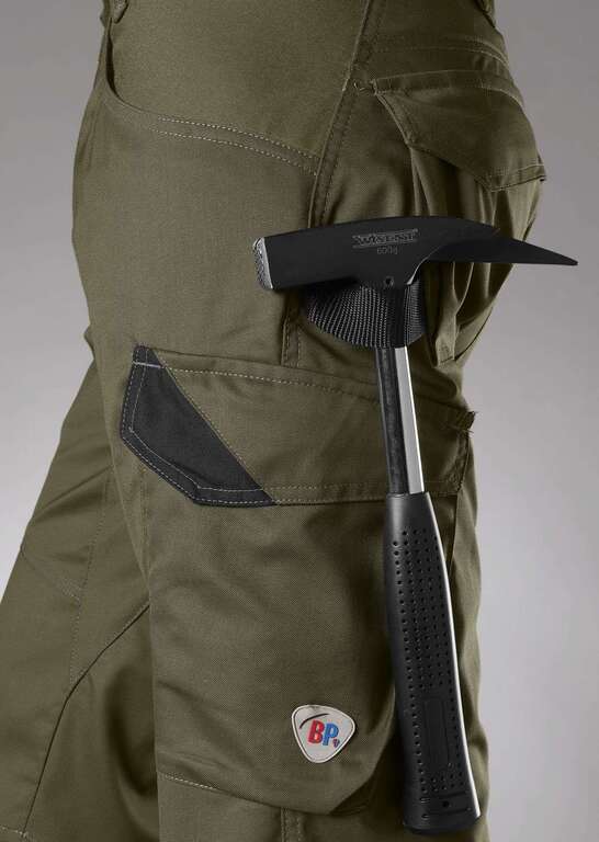 Schlanke Silhouette, Dehnbund im Rücken für optimalen Sitz, ergonomischer Schnitt, D-Ring zum Befestigen von Accessoires, Hammerschlaufe, 2 Seitentaschen mit Stretcheinsatz für einen leichteren Eingriff, 2 mit Patte verschließbare Gesäßtaschen, 1 geräumige Schenkeltasche mit integrierter Smartphonetasche, freihängende doppelte Zollstocktasche Dehnbund für optimalen Sitz Stretch-Material für optimale Bewegungsfreiheit funktionale Taschen, Hammerschlaufe schmale Passform