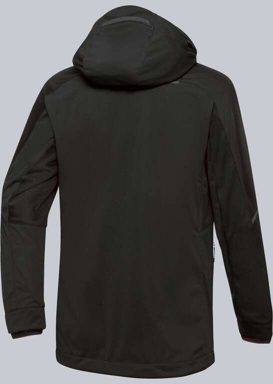 Stehkragen, Frontreißverschluss mit Fleece-Kinnschutz, 1 Brusttasche und 2 Seitentaschen mit Reißverschluss, Ärmelabschluss mit Windschutz, Armliftsystem für mehr Bewegungsfreiheit, innenliegende Saumweitenverstellung, abzippbare und weitenregulierbare Kapuze, Reflexelemente abnehmbare Kapuze Windschutz am Ärmel dunkle Reflexelemente schmale Passform