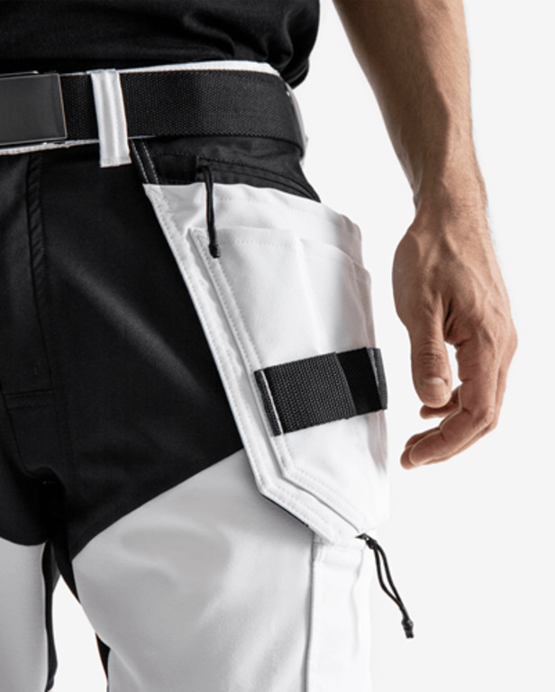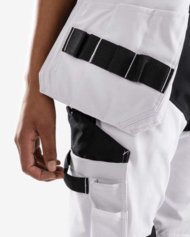 Speziell für Maler / Leichtes 4-Wege-Stretch-Gewebe / Elastische Taille an den Seiten / Verdeckter Knopf vorne / 2 CORDURA®-verstärkte Hängetaschen für Malerwerkzeug mit 3 kleineren Taschen und Werkzeugschlaufen, eine zusätzliche Reißverschlusstasche / D-Ring unter der Hängetasche / 2 Vordertaschen / 2 Gesäßtaschen, komplett mit CORDURA® gefüttert, für z.B. Werkzeug, Schleifpapier Werkzeug, Schleifpapier / Doppelt verstärkte Schrittnaht / Schleife mit Druckknopfverschluss / Geräumige Beintasche für Zollstock und Malerwerkzeug aus CORDURA®, CORDURA®-verstärkte Werkzeug- und Teppichmessertasche, Stifttasche und Knopf und Schlaufe für Messer / Beintasche mit Druckknopfverschluss und großer staub- und wassergeschützter Reißverschlusstasche für z. B. Handy / CORDURA®-gefütterte Beintasche mit Druckknopfverschluss und großer staub- und wassergeschützter Reißverschlusstasche für z. B. Handy / CORDURA®-gefütterte Beintasche mit Druckknopf und Schlaufe für Fahrtenmesser Handy / CORDURA®-verstärkte Knietaschen mit Innenöffnung / Höhenverstellung für Knieschoner in den Knietaschen / Reflektierende Details an den Knien / Zugelassen nach EN 14404 zusammen mit Knieschoner 124292 / OEKO-TEX® zertifiziert. Größen: C42 - C62 Normen: OEKO-TEX® Klassifikationen: EN 14404 Knieschutz Eigenschaften: Für Maler konstruiert|4-Wege-Stretch|Robustes Lightweight-Material description (en): Designed for painters / Lightweight 4-way stretch fabric / Elastic waist at sides / Concealed front button / 2 CORDURA®-reinforced loose-hanging pockets adapted for painters tools with 3 smaller pockets and tool loops, one extra zip pocket / D-ring under loose-hanging pocket / 2 front pockets / 2 back pockets, fully lined with CORDURA®, for e.g. tools, sandpaper / Double reinforced crotch seam / Strap for cloth, with snap fastener / Spacious leg pocket for folding rule and painters tools in CORDURA®, CORDURA®-reinforced tool pocket and carpet knife pocket, pen pocket and button and loop for sheath knife / Leg pocket with snap fastening and large dust and water-protected zip pocket for e.g. mobile phone / CORDURA®-reinforced knee pockets with inside opening / Height adjustment for knee pads in knee pockets / Reflective details at knees / Approved according to EN 14404 together with kneepads 124292 / OEKO-TEX® certified.