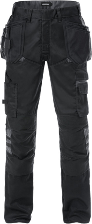 Mechanische Stretch-Qualität / Dunkelgraue reflektierende Details / Verdeckter Druckknopfverschluss / 2 Vordertaschen / 2 CORDURA®-verstärkte lose hängende Taschen, 1 mit 3 kleineren Taschen und Werkzeugschlaufe und 1 mit einer zusätzlichen Tasche / Doppelschrittnaht / 2 Gesäßtaschen / 2 Oberschenkeltaschen / CORDURA®-verstärkte Zollstocktasche mit Werkzeugtasche, Stifttasche, Knopf und Schlaufe für Arbeitsmesser / Beintasche mit Patte und Klettverschluss, Handytasche und zusätzliche Tasche mit Patte und Klettverschluss, D-Ring unter Patte / CORDURA®-verstärkte Knietaschen mit Außenöffnung / Höhenverstellung der Kniepolster in der Knietasche / CORDURA®-verstärkte Beinabschlüsse / Geprüft und zugelassen gemäß EN 14404 zusammen mit den Knieschoner 124292 / Industriewäsche geeignet gemäß ISO 15797 / OEKO-TEX® zertifiziert / RFID-Chip kann als VAS-Lösung hinzugefügt werden. Größen: C44 - C62 C146 - C156 D84 - D120 Normen: OEKO-TEX®|PRO Industrial laundry Klassifikationen: EN 14404 Knieschutz Eigenschaften: Langlebiges, leichtes mechanisches Stretchmaterial|CORDURA® verstärkt|Für Industriewäsche geeignet description (en): Mechanical stretch fabric / Dark grey reflective details / Concealed front button / 2 CORDURA®-reinforced loose-hanging pockets, one with 3 smaller pockets and tool loop and one with extra pocket / 2 front pockets / 2 back pockets / Double crotch seam / CORDURA®-reinforced folding rule pocket with tool pocket, pen pocket and button and loop for sheath knife / 2 thigh pockets / Leg pocket with flap and velcro fastening, mobile phone pocket and extra pocket with flap and velcro fastening, D-ring under flap / CORDURA®-reinforced knee pockets with outside opening / Height adjustment for knee pads in knee pocket / CORDURA®-reinforced leg ends / Approved according to EN 14404 together with kneepads 124292 / Leasing-laundry tested according to ISO 15797 / OEKO-TEX® certified / RFID chip can be added as a VAS solution.