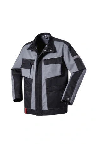 Stehkragen, verlängerter Rücken, verdeckter Reißverschluss und verdeckte Druckknöpfe, ergonomische Schnittführung, Stretcheinsätze im hinteren Schulterbereich, CORDURA®-Verstärkung an den Ellenbogen und an den Brusttaschen, eine linke Brusttasche mit Patte und verdeckten Druckknöpfen, eine rechte aufgesetzte Brusttasche mit Blasebalg, Patte und Stiftfach und oberhalb zusätzliche eingesetzte Reißverschlusstasche, Reflexbiese an linker Taschenpatte und in der Rückenpasse. Seitliche Eingrifftaschen davon eine eingesetzte Tasche mit Blende und verdecktem Druckkopf, eine schräg aufgesetzte Tasche, doppelte Stifttasche auf linkem Oberarm, eine linke Innentasche und verstellbare Ärmelsaumweite durch Druckknöpfe. Leasingtaugliche Verarbeitung. Bundjacke zweifarbig und dreifarbig erhältlich.