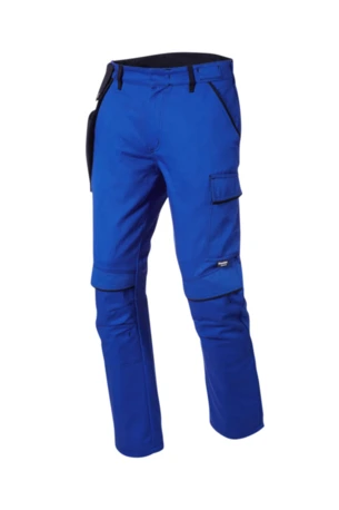 Bundhose mit Knietaschen, zwei eingesetzte Seitentaschen, Zollstocktasche, zwei Gesäßtaschen, rechte mit Patte, eine Cargotasche, Knietaschen, Schlitz mit Metallreißverschluss, Hosenbund mit innenliegendem Knopf verschließbar, Laschen für separate Flexi-Pocket, Kontrastelemente in Schwarz an den Gürtelschlaufen, Innenbund, Tascheneingriffen und den Patten