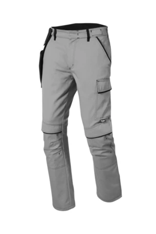 Bundhose mit Knietaschen, zwei eingesetzte Seitentaschen, Zollstocktasche, zwei Gesäßtaschen, rechte mit Patte, eine Cargotasche, Knietaschen, Schlitz mit Metallreißverschluss, Hosenbund mit innenliegendem Knopf verschließbar, Laschen für separate Flexi-Pocket, Kontrastelemente in Schwarz an den Gürtelschlaufen, Innenbund, Tascheneingriffen und den Patten