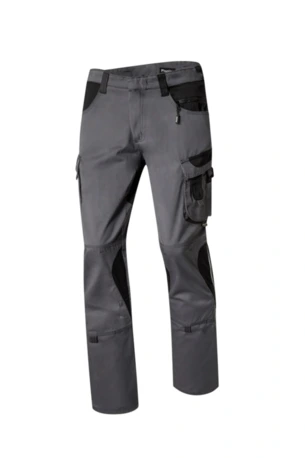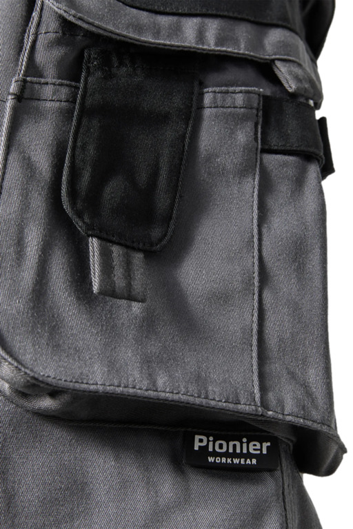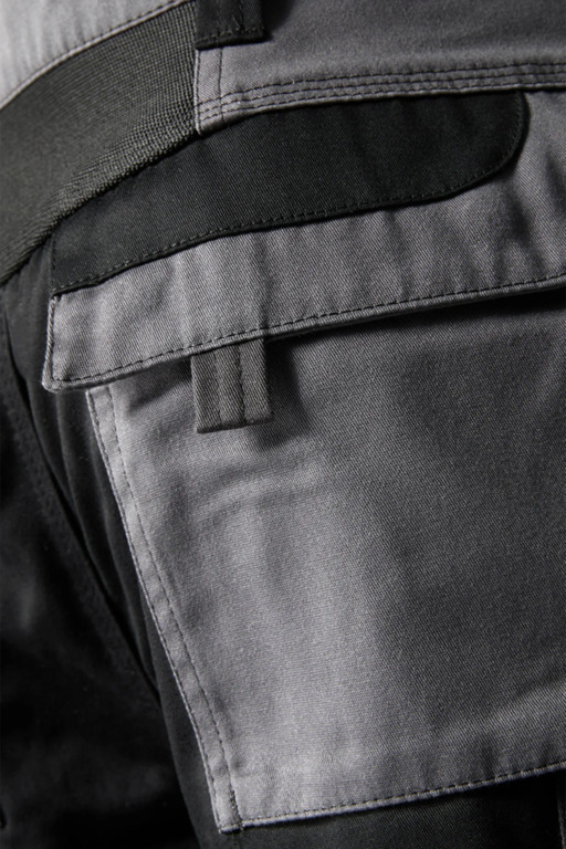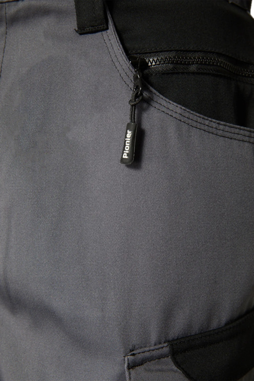Zweifarbige Bundhose für Damen mit hochgezogenem Bund, Stretcheinsätze in Schritt und Bund, zwei aufgesetzte Schenkeltaschen mit Blasebalg und Patte, links mit aufgesetzter schräger Handytasche & Stiftfach, Zollstocktaschen rechts und links, Reißverschluss im Schlitz, verdeckter Bundknopf, Reißverschlusstasche oberhalb der linken Eingrifftasche, vorgeformte Kniepolstertaschen, kombinierbar mit dem Pionier Kniepolster (W8 90020), zwei Gesäßtaschen davon die rechte mit Patte und Klettverschluss, sechs Gürtelschlaufen, Reflexpaspeln