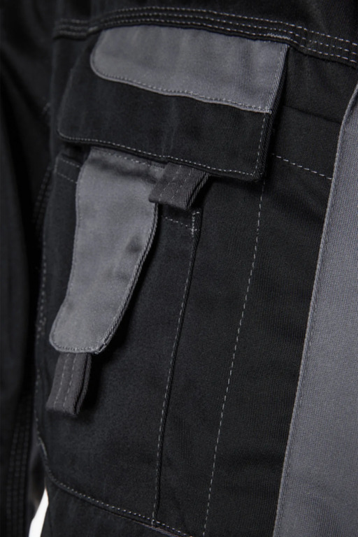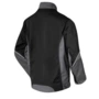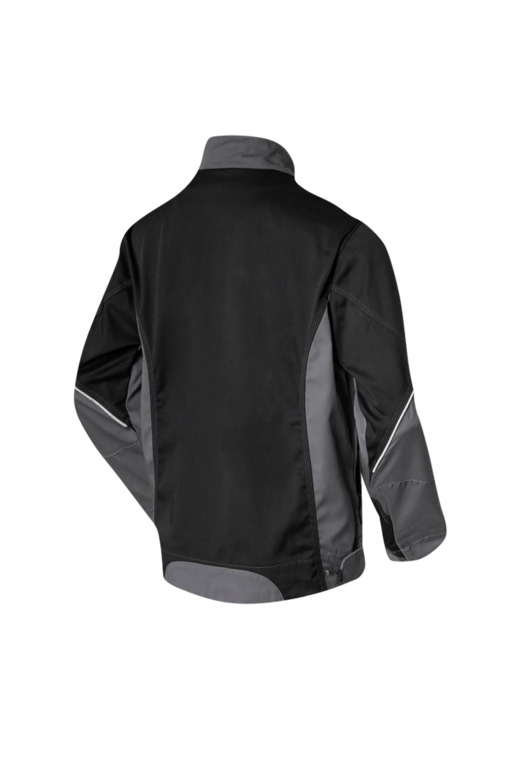 Leasingtaugliche zweifarbige Bundjacke, Stehkragen, verdeckter Reißverschluss, zwei eingesetzte Seitentaschen mit verdecktem Reißverschluss, Innentasche, eine innenliegende eingesetzte Brusttasche mit verdecktem Reißverschluss, eine aufgesetzte Blasebalg-Brusttasche mit Patte, Stifttasche, aufgesetzte Handytasche auf der rechten Brusttasche, extra langer Rücken, innenliegende Ärmelstrickbündchen, innenliegende Druckknöpfe zum Einknöpfen einer Innenweste, Bundweitenverstellung durch Druckknopflasche, Reflexpaspel vorne und an den Ellenbogen