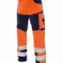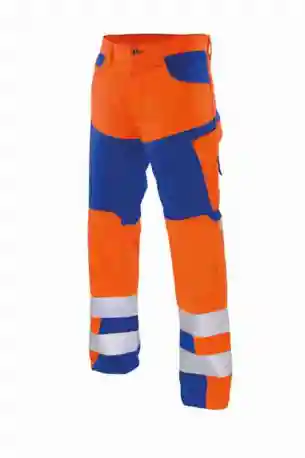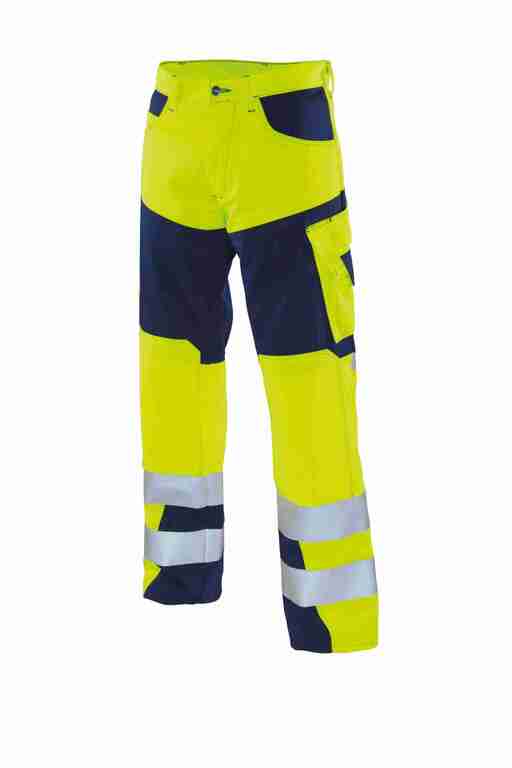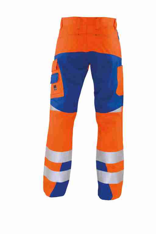 Bund mit Gürtelschlaufen und Knopf, Schlitz mit Reißverschluss, 2 Seitentaschen, Seitentasche rechts zusätzlich mit Billettasche, links Cargotasche mit Patte und Klett und integrierter Zollstocktasche, zusätzlich aufgesetzte Handytasche mit Patte und Klett sowie Stiftöffnung, rechts Zollstocktasche mit abgenähter Stifttasche, Knietaschen, 2 Gesäßtaschen, 70mm Reflexstreifen um Beine, Reflexapplikationen an Hinterhose. Eigenschaften:strapazierfähig, geringes Gewicht, angenehmer weicher Griff, wasser-, öl- und schmutzabweisend, hautfreundlich (Öko-Tex Standard 100 Produktklasse II), guter Tragekomfort. Anwendungsgebiete:bei Verkehrsbetrieben.