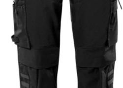 Dehnbund mit Feststellmöglichkeit, Bund mit Gürtelschlaufen und Knopf, Schlitz mit Reißverschluss, 2 Seitentaschen, links Cargotasche mit zusätzlich aufgesetzter Tasche jeweils mit Patte und Klett sowie integrierter Stifttasche, rechts Cargotasche mit Patte und Klett und integrierter Zollstocktasche, zusätzlich aufgesetzte Tasche, Knietaschen aus Cordura, 2 Gesäßtaschen, Gesäßtasche rechts mit Patte und Klett, Reflexstreifen 50mm und 70mm je Bein.