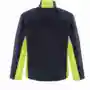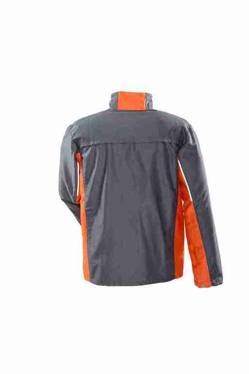 Stehkragen, vordere Mitte mit Druckknöpfen, 2 Brusttaschen mit Patte und Druckknopf, Ärmelabschluss weitenverstellbar durch Druckknöpfe, 2 Brustinnentaschen, Reflexpaspel an Rumpf und Ärmeln, Reflexpaspel auf Schultern.