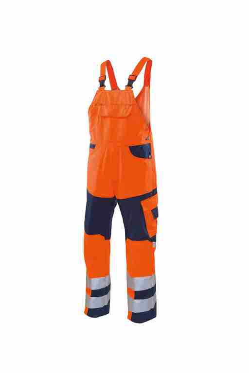 Stretchträger, aufgesetzte Latztasche mit Patte und Klett sowie 2 Stiftöffnungen, Schlitz mit Reißverschluss, Bund weitenverstellbar durch seitliche Knopfleiste, 2 Seitentaschen, Seitentasche rechts zusätzlich mit Billettasche, links Cargotasche mit Patte und Klett und integrierter Zollstocktasche, zusätzlich aufgesetzte Handytasche mit Patte und Klett sowie Stiftöffnung, rechts Zollstocktasche mit abgenähter Stifttasche, Knietaschen, 2 Gesäßtaschen, 70mm Reflexstreifen um Beine, Reflexapplikationen an Hinterhose. Eigenschaften:strapazierfähig, geringes Gewicht, angenehmer weicher Griff, wasser-, öl- und schmutzabweisend, hautfreundlich (Öko-Tex Standard 100 Produktklasse II), guter Tragekomfort. Anwendungsgebiete:bei Verkehrsbetrieben.