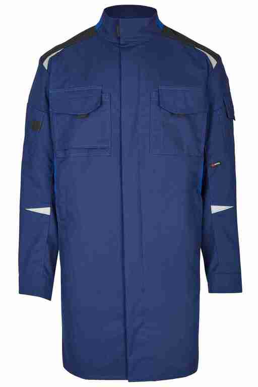 Variabler Stehkragen, vordere Leiste verdeckt mit Druckknöpfen, 2 Brusttaschen mit Patte und Klett, jeweils mit Stiftöffnung, 2 Armtaschen mit Stifttaschen und Unterteilung, Ärmelabschluss weitenverstellbar durch Klett, Bewegungsfalten im Rückenteil, Rückenkoller mit Belüftungsöffnung, 2 Seitentaschen mit Reißverschluß, aufgesetzter Bund im Rückenteil, 2 große Innentaschen, hochfestes Cordura Gewebe an Schultern ? Reflexpapplikationen am Rumpf und Ärmeln.