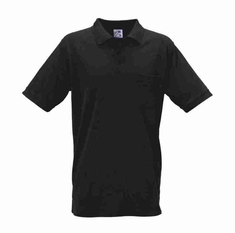 Polokragen mit Knopfleiste, Kurzarm, Ärmelabschuss mit elastischem Bündchen, links Brusttasche. Eigenschaften:reißfest, strapazierfähig, atmungsaktiv, gute Aufnahme der Körperfeuchtigkeit, sehr hohe Farbechtheit, hautfreundlich (Öko-Tex Standard 100 Produktklasse II).