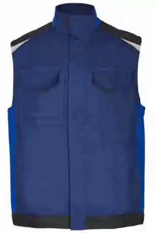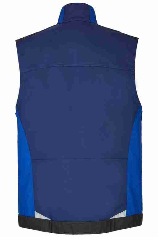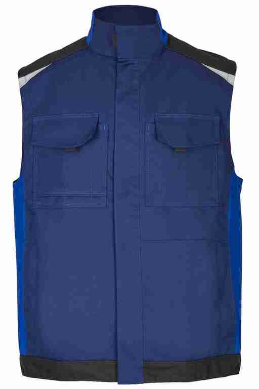 Variabler Stehkragen, vordere Mitte mit Reißverschluss und Klett, 2 Brusttaschen mit Patte und Klett, jeweils mit Stiftöffnung, 2 Seitentaschen mit Reißverschluss, 2 große Innentaschen, Reflexapplikationen an Vorder-, Rückenteil, Schultern.