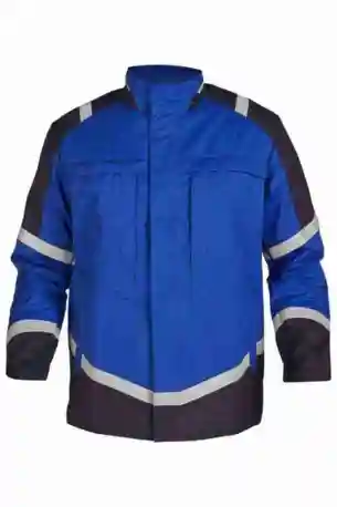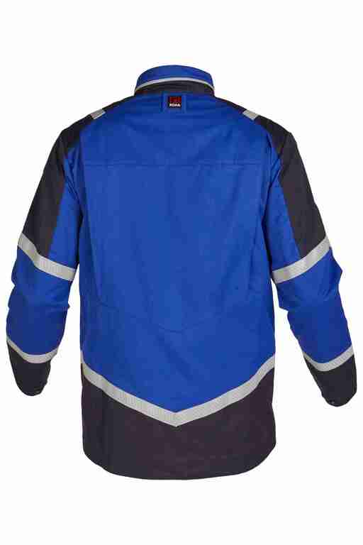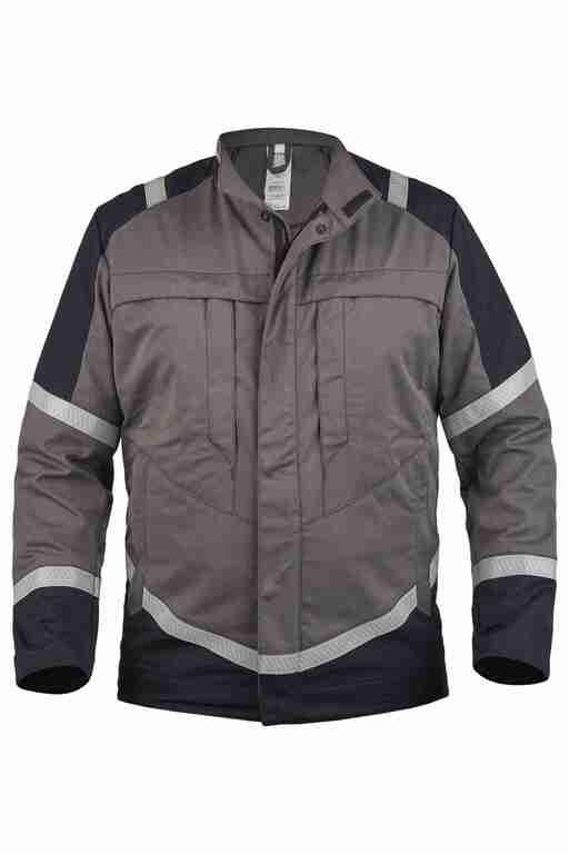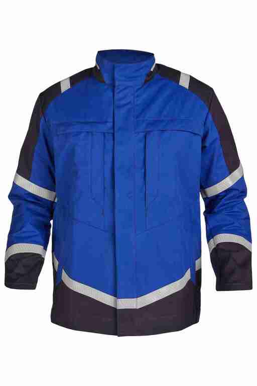 Stehkragen ? vordere Mitte mit Reißverschluss und Druckknöpfen ? Kragen mit Klett ? 2 Brusttaschen mit Reißverschluss? Ärmelabschluss weitenverstellbar durch Druckknöpfe ? 2 Seitentaschen mit Reißverschluss? Bewegungsfalten im Rückenteil ? verlängerter Rücken ?2 Innentaschen mit Klett ? Kunststoffdruckknöpfe ? 25 mm Reflexstreifen um Rumpf, Ärmel und über Schulter ? Reflexpaspel am Kragen.