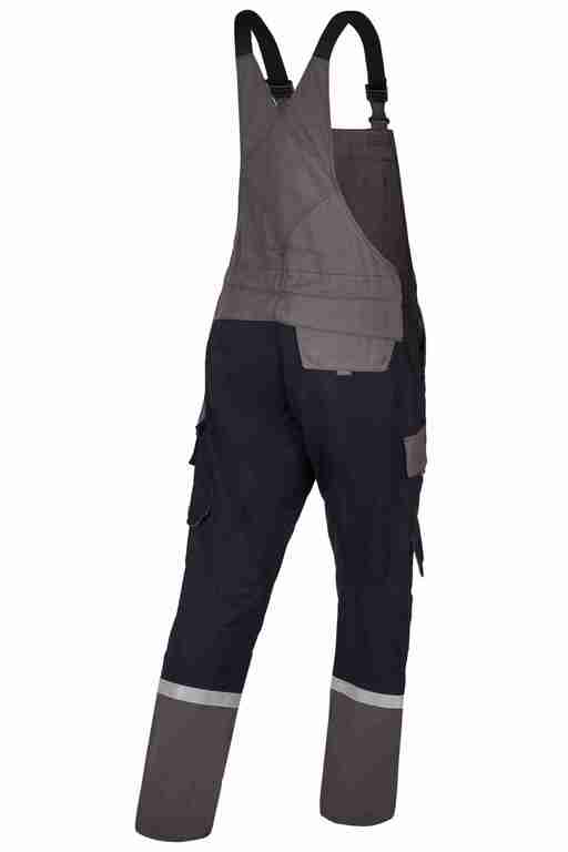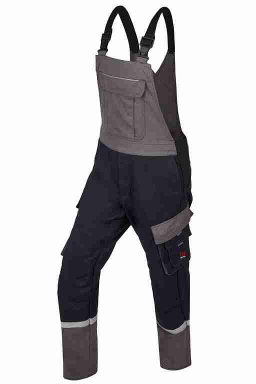 Stretchträger ? Latztasche ? Schlitz mit Reißverschluss ? Bund seitlich mit Dehneinsatz und im Rücken mit verstellbarem Gummizug ? 2 Seitentaschen ? links Cargotasche mit aufgesetzter Smartphonetasche ? rechts Zollstocktasche ? Knietaschen ? rechts Gesäßtasche ? alle Taschen mit Patten und Druckknöpfen ? 25 mm Reflexstreifen um Beine.