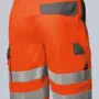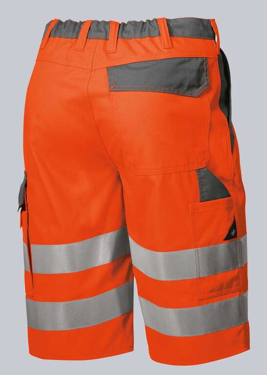 Rückwärtiger Dehnbund für optimalen Sitz, 2 Seitentaschen, Schenkeltasche mit aufgesetzter Smartphone- und Stifttasche, Schenkel- und Smartphonetasche mit Patte verschließbar, doppelte Zollstocktasche, 1 mit Patte verschließbare Gesäßtasche, je 2 umlaufende Reflexstreifen auf dem Bein Dehnbund für optimalen Sitz integrierter UV Schutz nach Standard 801 retroreflektierende Streifen von 3M schmale Passform EN ISO 20471 Warnschutz Klasse 1,