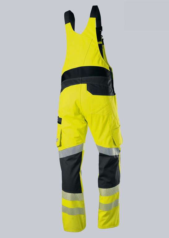 Stretchträger mit Kunststoff-Steckschnallen, doppelte Latztasche mit Patte verschließbar, davon 1 Tasche mit Reißverschluss, Bundweite durch verstellbaren Stretchkeil BP® Flex regulierbar, hochgezogener Rücken mit Stretcheinsatz für mehr Bewegungsfreiheit, Schlitzreißverschluss, 2 Seitentaschen, 1 mit Patte verschließbare Gesäßtasche, 1 geräumige Schenkeltasche mit integrierter Reißverschlusstasche und integrierter Smartphonetasche, freihängende Zollstocktasche mit Stifttaschen, ergonomischer Schnitt, je 2 umlaufende Reflexstreifen auf dem unteren Bein, je 1 umlaufender Reflexstreifen auf dem oberen Bein, mit Reißverschluss verschließbare Kniepolstertaschen mit Belüftungsöffnung (BP® Kniepolster 1839-000-53 bitte separat bestellen) elastisches Material für mehr Bewegungsfreiheit hochgezogener Rücken mit Stretcheinsatz Kniepolstertaschen mit Belüftungsöffnung modern fit EN ISO 20471 Warnschutz Klasse 2, EN 14404 Knieschutz in Verbindung mit BP® Kniepolster 1839-000-53,