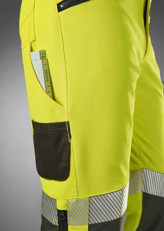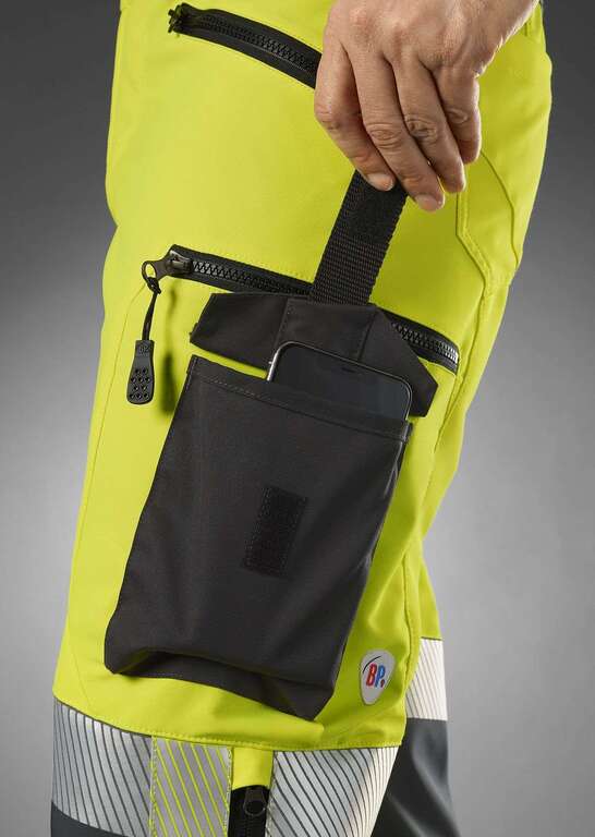 Schlanke Silhouette, erhöhter Dehnbund im Rücken für optimalen Sitz, 2 Seitentaschen mit Reißverschluss, 2 Gesäßtaschen, 1 geräumige Schenkeltasche mit Reißverschluss und aufgesetzter Smartphonetasche mit Lifter, freihängende Zollstocktasche mit Stifttaschen, ergonomischer Schnitt, je 2 umlaufende Reflexstreifen auf dem unteren Bein, je 1 umlaufender Reflexstreifen auf dem oberen Bein, mit Reißverschluss verschließbare Kniepolstertaschen mit Belüftungsöffnung (BP® Kniepolster 1839-000-53 bitte separat bestellen) vollelastisches Material für maximale Bewegungsfreiheit besonders leicht, atmungsaktiv und schnell trocknend segmentierte Reflexstreifen für mehr Tragekomfort modern fit EN ISO 20471 Warnschutz Klasse 2, EN 14404 Knieschutz in Verbindung mit BP® Kniepolster 1839-000-53,