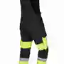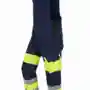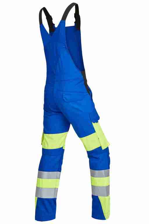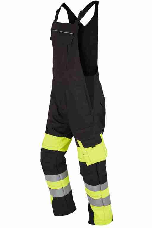 Stretchträger, Latztasche mit Patte und Druckknöpfen, Schlitz mit Reißverschluss, Bund seitlich mit Dehneinsatz, 2 Seitentaschen, links Cargotasche mit aufgesetzter Smartphonetasche jeweils mit Patte und Druckknöpfen, rechts Zollstocktasche mit Patte und Druckknopf, Knietaschen, Gesäßtaschen mit Patte und Druckknöpfen, einfache Hosenbeinverlängerung durch skandinavischen Saum, 50mm und 70mm Reflexstreifen um Beine, Reflexpaspel an Latz, Vorderteil zweilagig. .