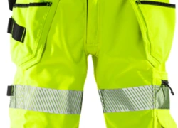 Moderne Passform mit ergonomisch geschnittenen Hosenbeinen und Einsatz im Schritt sowie an der Rückseite für überragende Bewegungsfreiheit KneeGuard®-Knietaschen für optimalen Sitz ohne zu verrutschen, EN 14404 zertifiziert Extra robuste Aramid-Verstärkung an Knietaschen und Schienbeinen sowie extra DuPont™Kevlar® Faserverstärkungen in der Werkzeugtasche für erhöhte Haltbarkeit Leicht zugängliche Beintaschen mit Messerhalterung, Smartphonefach und abnehmbarem ID-Karten-Halter sowie Schlüssel- und Messerhalter Elektriker Werkzeugschlaufen an beiden Seiten 88-128, 44-64, 144-164 EN 20471 - High visibility clothing, EN ISO 11611 - Protective clothing for use in welding and allied processes, EN 11612 - Protective clothing against heat and flame, EN 14404 - Knee protection, IEC 61482-2:2009 - Protective clothing against the thermal hazards of an electric arc 49% Modacrylic FR, 42% Baumwolle, 5% Aramid, 3% Polyamide, 1% antistatische Faser, 300 g/m²Verstärkungen: 100% Para-Aramid, 545 g/m²