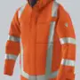 Stehkragen, abknöpfbare Kapuze mit doppelter Weitenregulierung, wasserdichter Frontreißverschluss mit doppelte Druckknopfleiste, verschweißte Nähte, 2 Seitentaschen und 1 Brusttasche mit Druckknopf verschließbar, 1 Napoleontasche mit Reißverschluss, ergonomisch geformter Ärmel, verstellbarer Ärmelabschluss, 1 Innentasche mit Reißverschluss, große Reparaturöffnung, je 2 Reflexstreifen auf dem Ärmel, 1 umlaufender Reflexstreifen oberhalb des Saumes, je 2 umlaufende vertikale Reflexstreifen vorne und hinten, kombinierbar mit wärmender BP® Fleecejacke 2425-860-53 360° Sichtbarkeit wasserdicht & winddicht permanenter Flammschutz normale Passform EN 343 Wetterschutz Wasserdicht Kl. 3, atmungsaktiv Kl. 3, EN 14058 Schutz bei kühlen Umgebungen Kl. 1 3 x WP in Verbindung mit Fleecejacke 2425-860, EN 1149-5 Elektrostatisch ableitfähige Schutzkleidung, EN 13034-6 Chemikalienschutz Typ 6, EN 61482-2 Störlichtbogenschutz Kl. 2, EN ISO 11611 Schweißerschutz Kl. 1 - A1, EN ISO 11612 Hitze- und Flammschutz A1, B1, C2, F1, EN ISO 20471 Warnschutz Klasse 3,