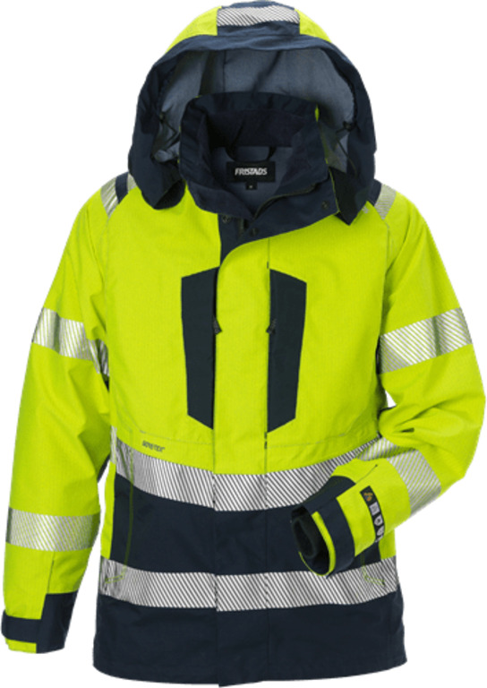 Zweilagiges GORE-TEX PYRAD® Material, wind- und wasserdicht, atmungsaktiv / Schmutz- und ölabweisend / Vollständig gefüttert / Reflektierende Details an den Schultern / Abnehmbare, gefütterte Kapuze mit Zugband / Verdeckter Reißverschluss mit Klettverschluss bis zum oberen Kragenrand / 2 Brusttaschen mit Patte, Klettverschluss und Reißverschluss - eine mit D-Ring / 2 Vordertaschen mit Patte, Klettverschluss und Reißverschluss / 2 Innentaschen, 1 mit Knopf und 1 mit Reißverschluss / Verstellbarer Armabschluss / Elastische Ärmelinnenbündchen / Verstellbarer Kordelzug im Bund / Reißverschluss im Futter ermöglicht Stickereien und Wärmetransfers / Metallfreies Kleidungsstück / Wassersäule > 10.000 mm / ePTFE Membran / Atmungsaktivität RET 8,33 / Zugelassen nach EN 61482-1-2 APC 2, EN 61482-1-1 ELIM: 40 cal/cm² (siehe Lichtbogentabelle für zertifizierte Bekleidungskombinationen für EN 61482-1-2 Klasse 2 und offenen Lichtbogen nach EN 61482-1-1), EN ISO 11612 A1 A2 B2 C1 D3 E3 F1, EN ISO 11611 A1 A2 Klasse 2, EN 1149-5, EN 13034 Typ PB [6], EN ISO 20471 Klasse 2 in den Größen XS-S und Klasse 3 in den Größen M-3XL und EN 343 Klasse 4/4 / Zugelassen nach 30 Wäschen / OEKO-TEX® zertifiziert. Größen: XS - 3XL Normen: OEKO-TEX® PPE|U6 Klassifikationen: IEC 61482-2 Störlichtbogen, mit ELIM-Wert.|EN ISO 11612 Schutz vor Hitze und Flammen|EN ISO 11611 Schweißer-Schutz|EN 1149 Schutz vor elektrostatischer Entladung|EN 13034 Schutz (begrentzt) vor flüssigen Chemikalien|EN 20471 Warnschutz|EN 343 Regenschutz Eigenschaften: Wasserdicht, winddicht und atmungsaktiv|Multinorm inhärenter Schutz|Extra hoher Störlichtichtbogenschutz description (en): 2-layer GORE-TEX PYRAD® material, wind and waterproof but breathable / Dirt and oil repellent / Fully lined / Reflective detail on shoulders / Detachable lined hood with adjustable strap and drawstring / Storm flap with zip to top of collar and velcro fastening / 2 chest pockets with flap with velcro fastening and zip, 1 with D-ring / 2 front pockets with flap with velcro fastening and zip / 2 inside pockets, 1 with button and 1 with zip / Adjustable sleeve end / Elastic inner cuffs / Adjustable hem with drawstring / Zip in lining to make embroidery and transfer easier / Metal free garment / Waterpillar > 10.000 mm / ePTFE membrane / Breathability RET 8,33 / Approved according to EN 61482-1-2 APC 2, EN 61482-1-1 ELIM: 40 cal/cm² (see Electric arc table for certified garment combinations for EN 61482-1-2 class 2 and open arc according to EN 61482-1-1), EN ISO 11612 A1 A2 B2 C1 D3 E3 F1, EN ISO 11611 A1 A2 class 2, EN 1149-5, EN 13034 type PB [6], EN ISO 20471 class 2 in sizes XS-S and class 3 in sizes M-3XL and EN 343 class 4/4 / Certified after 30 washes / OEKO-TEX® certified.