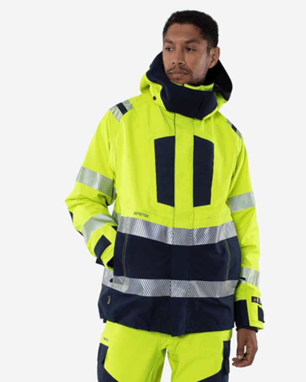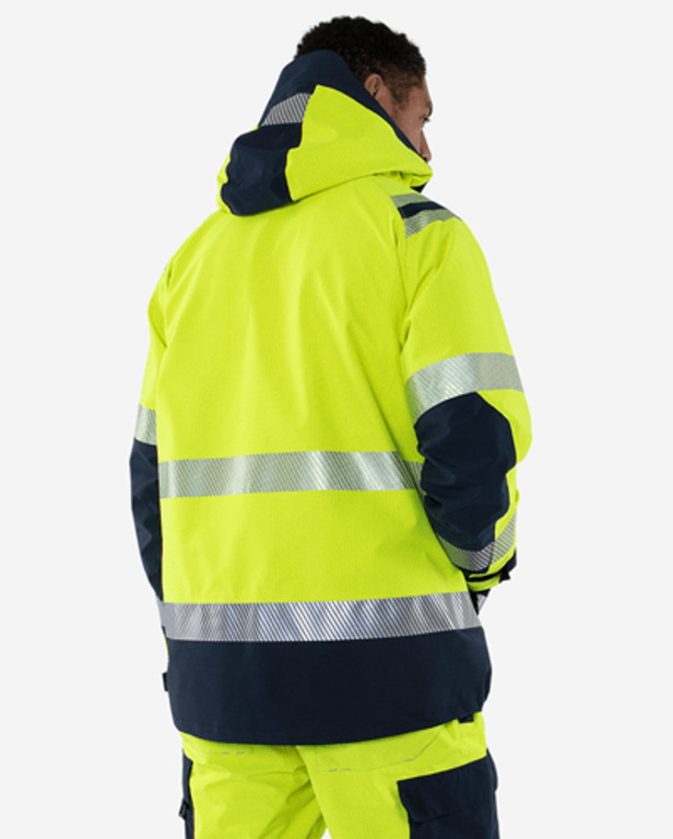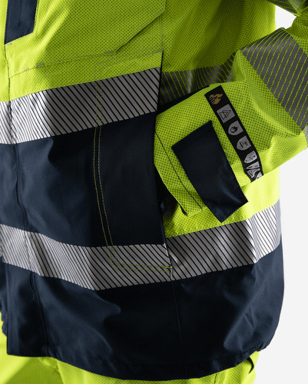 2-lagiges GORE-TEX PYRAD® Material, dauerhaft wind- und wasserdicht, atmungsaktiv / Schmutz- und ölabweisend / Vollständig gefüttert / Über die Schultern führende Reflexstreifen / Abnehmbare, verstellbare gefütterte Kapuze / Verdeckter Reißverschluss mit Klettverschluss bis zum oberen Kragenrand / 2 Brusttaschen mit Patte, Klettverschluss und Reißverschluss - eine mit D-Ring / 2 Vordertaschen mit Patte, Klettverschluss und Reißverschluss / 2 Innentaschen - eine mit Knopf, die andere mit Reißverschluss / Verstellbare Armabschlüsse / Elastische Ärmelinnenbündchen / Verstellbare Unterkante mit Kordel / Reißverschluss im Futter ermöglicht Stickereien und Wärmetransfers / Metallfreies Kleidungsstück / Wassersäule > 10.000 mm / ePTFE Membrane / Atmungsaktivität RET 8,33 / Geprüft nach EN 61482-1-2 APC 2, EN 61482-1-1 ELIM: 40 cal/cm² (siehe Lichtbogentabelle für zertifizierte Bekleidungskombinationen für EN 61482-1-2 Klasse 2 und offenen Lichtbogen nach EN 61482-1-1), EN ISO 11612 A1 A2 B2 C1 D3 E3 F1, EN ISO 11611 A1 A2 Klasse 2, EN 1149-5, EN 13034 Typ PB [6], EN ISO 20471 Klasse 2 in den Größen XS-S und Klasse 3 in den Größen M-3XL und EN 343 Klasse 4/4 / Geprüft nach 30 Wäschen / OEKO-TEX® zertifiziert. Größen: XS - 4XL Normen: OEKO-TEX® PPE|U6 Klassifikationen: IEC 61482-2 Störlichtbogen, mit ELIM-Wert.|EN ISO 11612 Schutz vor Hitze und Flammen|EN ISO 11611 Schweißer-Schutz|EN 1149 Schutz vor elektrostatischer Entladung|EN 13034 Schutz (begrentzt) vor flüssigen Chemikalien|EN 20471 Warnschutz|EN 343 Regenschutz Eigenschaften: Wasserdicht, winddicht und atmungsaktiv|Multinorm inhärenter Schutz|Extra hoher Störlichtichtbogenschutz description (en): 2-layer GORE-TEX PYRAD® material, wind and waterproof but breathable / Dirt and oil repellent / Fully lined / Reflective detail on shoulders / Detachable lined hood with adjustable strap and drawstring / Storm flap with zip to top of collar and velcro fastening / 2 chest pockets with flap with velcro fastening and zip, 1 with D-ring / 2 front pockets with flap with velcro fastening and zip / 2 inside pockets, 1 with button and 1 with zip / Adjustable sleeve end / Elastic inner cuffs / Adjustable hem with drawstring / Zip in lining to make embroidery and transfer easier / Metal free garment / Waterpillar > 10.000 mm / ePTFE membrane / Breathability RET 8,33 / Approved according to EN 61482-1-2 APC 2, EN 61482-1-1 ELIM: 40 cal/cm² (see Electric arc table for certified garment combinations for EN 61482-1-2 class 2 and open arc according to EN 61482-1-1), EN ISO 11612 A1 A2 B2 C1 D3 E3 F1, EN ISO 11611 A1 A2 class 2, EN 1149-5, EN 13034 type PB [6], EN ISO 20471 class 2 in sizes XS-S and class 3 in sizes M-3XL and EN 343 class 4/4 / Certified after 30 washes / OEKO-TEX® certified.