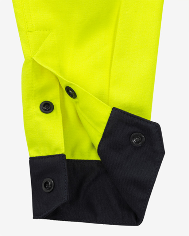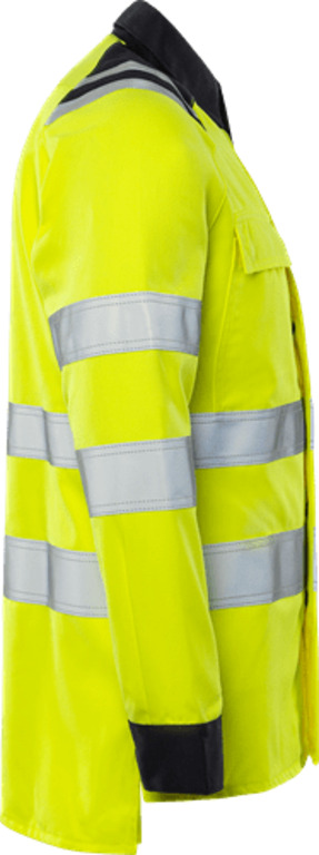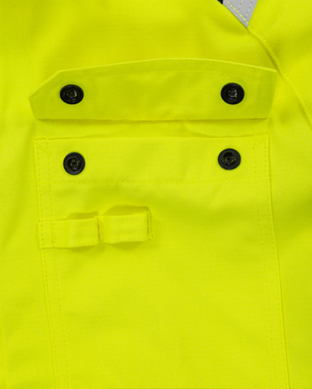 Über die Schulter führende Reflexstreifen / Verdeckte Druckknopfleiste / 2 Brusttaschen mit Patte und verdeckten Druckknöpfen - eine mit Stiftschlaufen / Armabschlüsse mit verdeckten Druckknöpfen / Verlängerte Rückenpartie / Seitenschlitze / Metallfreies Kleidungsstück / Geprüft und zugelassen gemäß EN 61482-1-2 Klasse 1, EN 61482-1-1 EBT: 9,9 cal/cm² HAF: 78,0% (siehe Lichtbogentabelle für zertifizierte Bekleidungskombinationen für EN 61482-1-2 Klasse 2 und offenen Lichtbogen nach EN 61482-1-1), EN ISO 11612 A1 A2 B1 C1 F1, EN 1149-5, EN ISO 20471 Klasse 3, EN 13034 Typ PB[6] / Industriewäsche geeignet gemäß ISO 15797 / OEKO-TEX® zertifiziert. Größen: XS - 4XL Normen: OEKO-TEX® PPE|PRO Industrial laundry|U6 Klassifikationen: IEC 61482-2 Störlichtbogen|EN ISO 11612 Schutz vor Hitze und Flammen|EN 1149 Schutz vor elektrostatischer Entladung|EN 13034 Schutz (begrentzt) vor flüssigen Chemikalien|EN 20471 Warnschutz Eigenschaften: Multinorm|Langlebiger, komfortabel|Inhärenter Flammschutz description (en): Concealed snap fastening under front placket / 2 chest pockets with flap and concealed snap fastenings, 1 with pen loops / Cuffs with concealed snap fastening / Extended back / Side slits / Metalfree garment / Approved according to EN 61482-1-2 class 1, EN 61482-1-1 EBT: 9,9 cal/cm² HAF: 78,0% (see Electric arc table for certified garment combinations for EN 61482-1-2 class 2 and open arc according to EN 61482-1-1), EN ISO 11612 A1 A2 B1 C1 F1, EN 1149-5, EN ISO 20471 class 3, EN 13034 Type PB [6] / Leasing laundry-tested according to ISO 15797 / OEKO-TEX® certified.