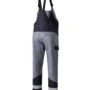 Dreifarbig, seitliche Stretcheinsätze, Druckknöpfe im Schlitz, verstellbaren Stretchträger mit Fixlockschnallen, Latztasche mit Patte und verdeckten Druckknöpfen, seitliche Eingrifftaschen mit Blende und verdecktem Druckkopf, Pattentasche auf linkem Oberschenkel und rechte doppelte Zollstocktasche mit Patte und verdeckten Druckknöpfen, innenliegende Knietaschen mit Kontrasteinsatz oberhalb der rechten Knietasche als Erkennungsmerkmal der Sicherheitsstufe „light“, Reflexstreifen unterhalb der Knietaschen, rechte Gesäßtasche mit Patte und verdecktem Druckknopf.