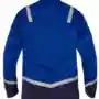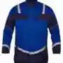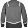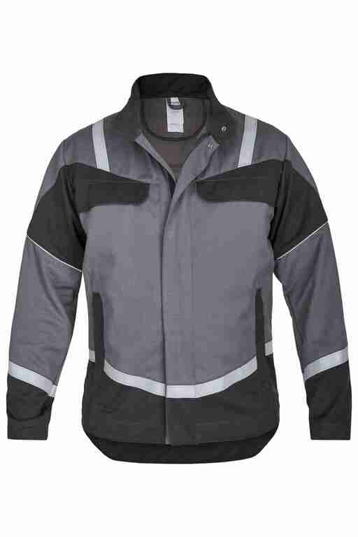 Stehkragen, vordere Mitte mit Reißverschluss und Druckknöpfen, 2 Brusttaschen mit Patte und Druckknopf, Ärmelabschluss weitenverstellbar durch Druckknöpfe, 2 Seitentaschen mit Reißverschluss, Bewegungsfalten im Rückenteil, verlängerter Rücken, links Brustinnentaschen mit Klett, zusätzlich 2 große Innentaschen, Reflexstreifen um Rumpf, Ärmel und über Schulter, Reflexpaspel um Ärmel.