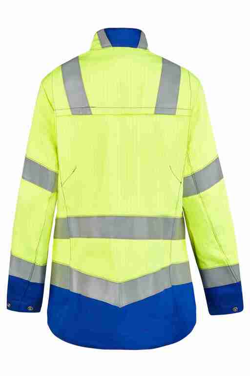 Normen: EN ISO 11612 A1 A2 B1 C1 E2 F1, EN ISO 11611 Kl. 1 A1 A2, EN 13034 TYP 6, EN 1149-3/-5, IEC 61482-2 APC 1, EN ISO 20471 Kl. 2