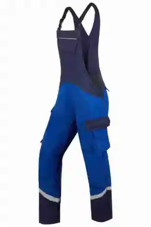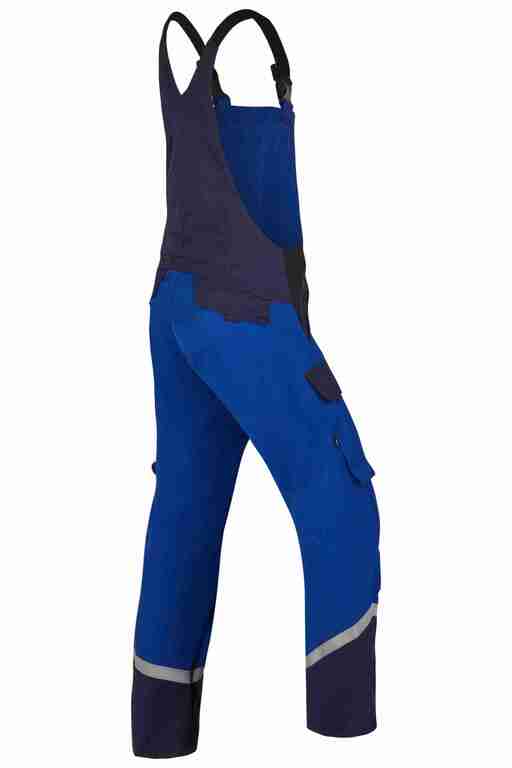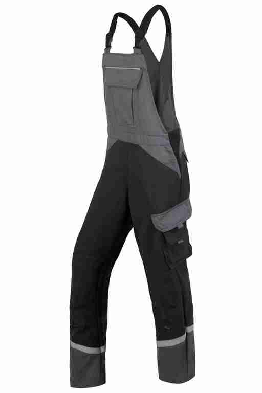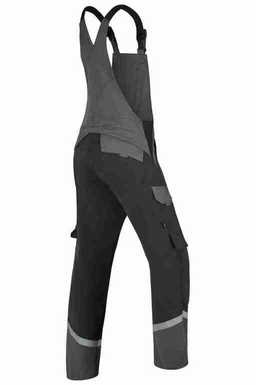 Stretchträger, Latztasche mit Patte und Druckknöpfen, Bund seitlich mit Dehneinsatz, 2 Seitentaschen, links Cargotasche mit aufgesetzter Smartphonetasche jeweils mit Patte und Druckknöpfen, rechts Zollstocktasche mit Patte und Druckknopf, Knietaschen, Gesäßtaschen mit Patte und Druckknöpfen, einfache Hosenbeinverlängerung durch skandinavischen Saum, Reflexstreifen um Beine, Reflexpaspel am Latz.