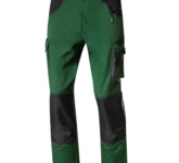 Zweifarbige Bundhose mit hochgezogenem Bund, Stretcheinsätze in Schritt und Bund, zwei aufgesetzte Schenkeltaschen mit Blasebalg und Patte, Zollstocktaschen, Reißverschluss im Schlitz, verdeckter Bundknopf, Reißverschlusstasche oberhalb der linken Eingrifftasche, vorgeformte Kni ...