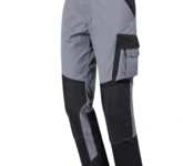 Robuste, zweifarbige Bundhose für Damen, zertifiziert nach DIN EN 14404 für Arbeiten in kniender Haltung, mit hochgezogenem Bund, Stretcheinsätze in Schritt und Bund, zwei aufgesetzte Schenkeltaschen mit Blasebalg und Patte, links mit aufgesetzter schräger Handytasche & S ...
